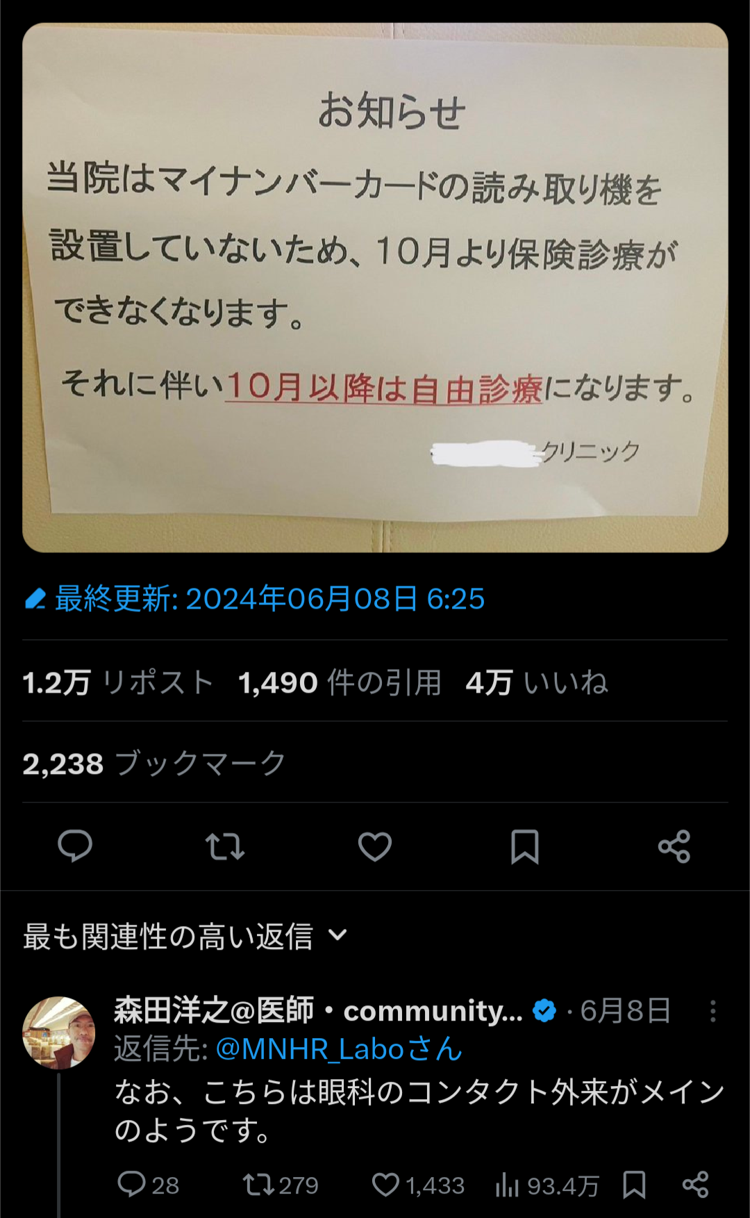 ていうかコレ要はマイナ保険証無い奴ら(ヤクザとか)相手の診療受け付けますって話か(´・ω・`)