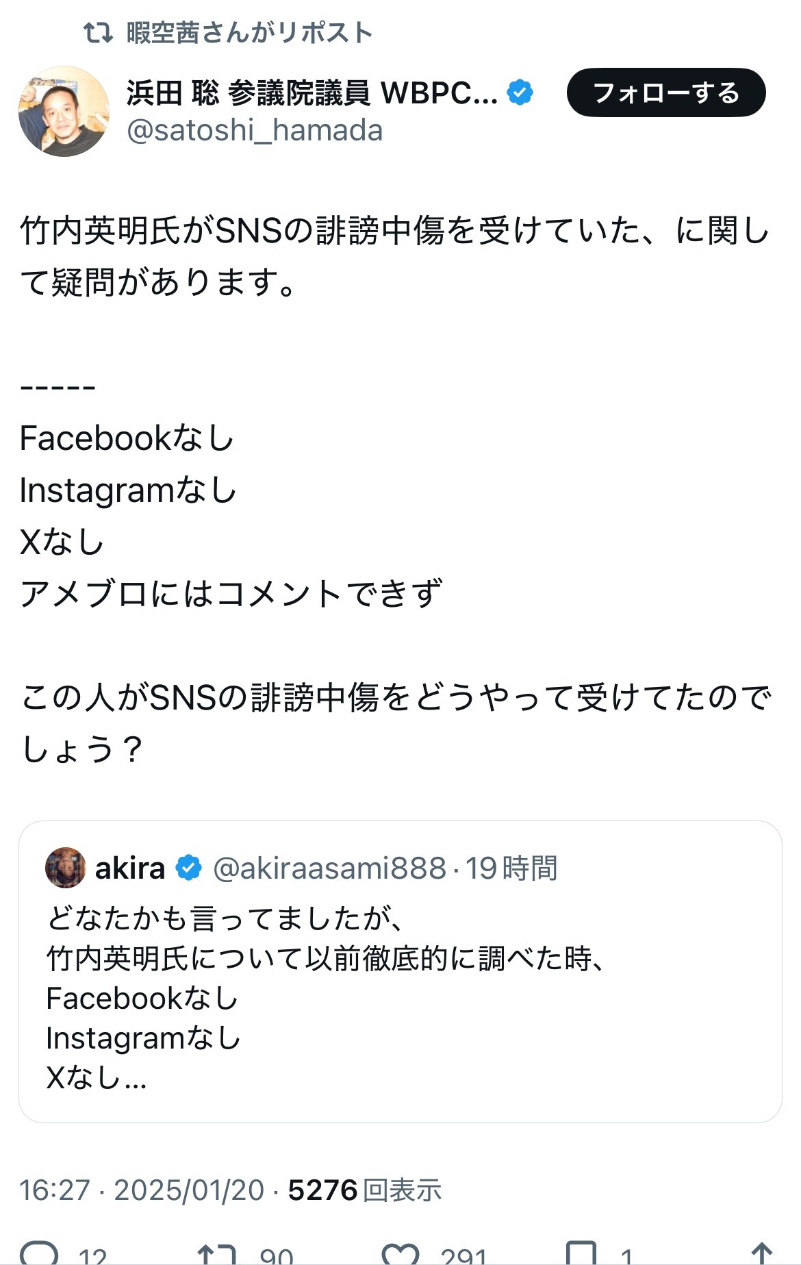 竹内氏への誹謗中傷って具体的にどんな物だったんだろうね