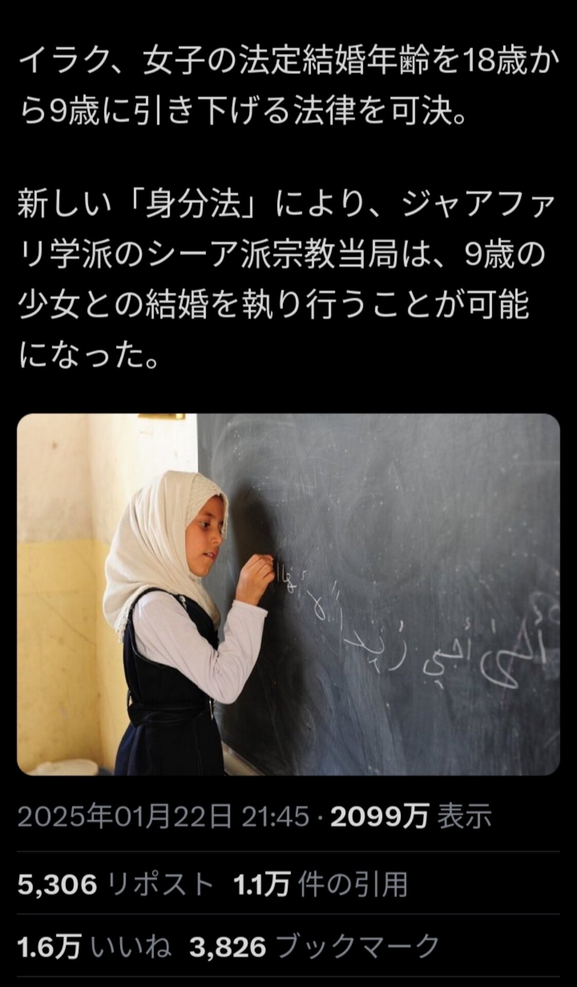 コーランには数の上限の項目はあれど、年齢の下限は書いてないだろな(´・ω・`)