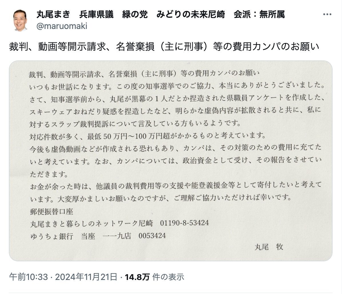こんな適当な文書を公益通報とするのが意味わからんわ