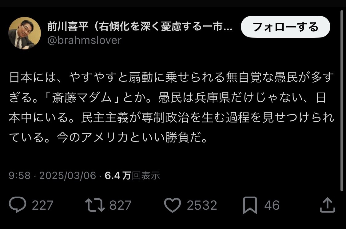 前川喜平さんは今日も元気に兵庫県民を愚民扱い