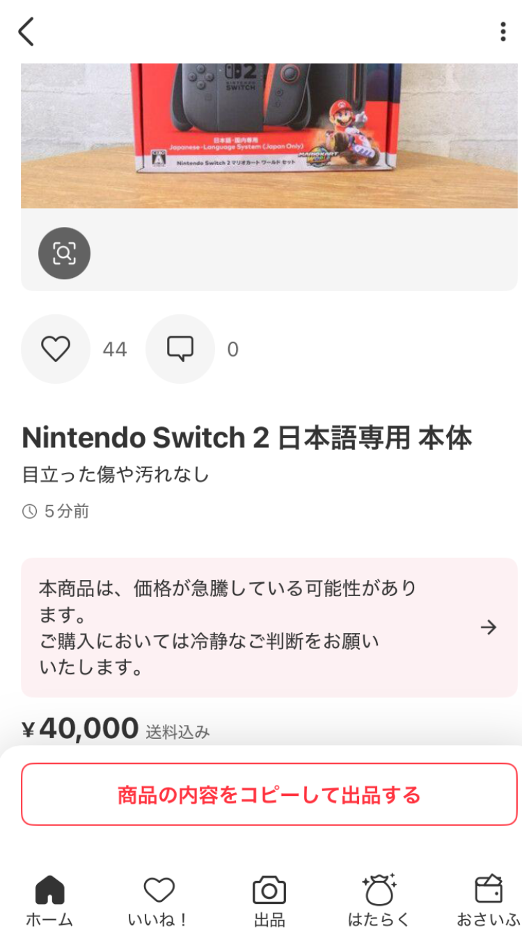 あれ?これメルカリじゃないの?メルカリ、ヤフオクあたりは転売の商品売れないようにするとか言ってなかった?