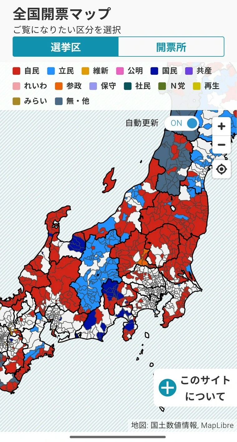 NHKが自公過半数難しい情勢から微妙な情勢で伝えてるから、思ってたより議席取れてるよな。国民と参政が食い合ってる中、自民がしれっと議席取ってるパターン多すぎ。