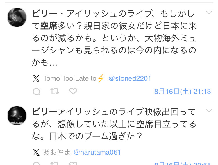 ビリー・アイリッシュでも空席になるんだ