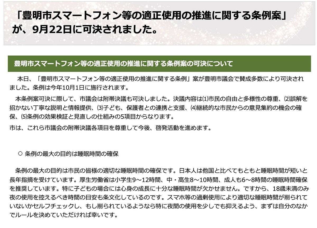 豊明市の「スマホ2時間条例」案が可決、仕事や勉強以外での使い過ぎ防止が目的