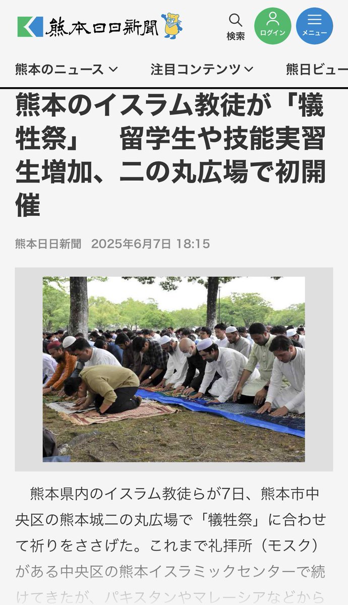熊本のイスラム教徒が「犠牲祭」 熊本城二の丸広場で開催 参加者約700人