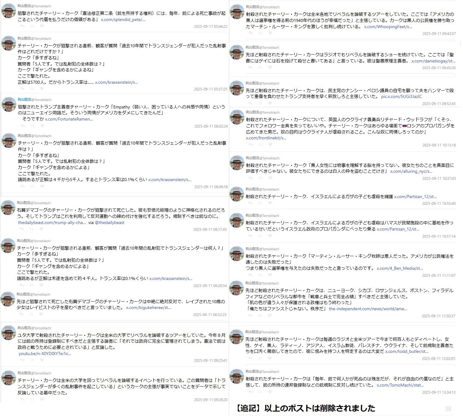 関連コピペ:町山智浩さん「チャーリー・カークざまぁ」しまくるも米ビザ取り消しにビビりポスト全消し : 2chコピペ保存道場
