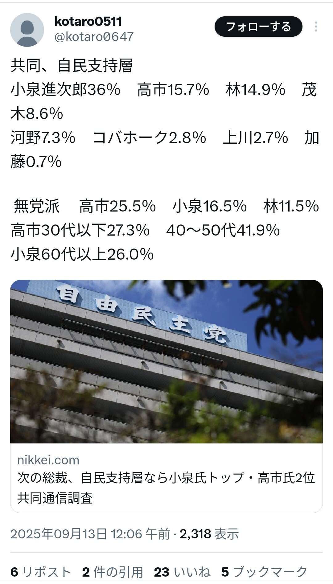 個人的には移民推進変わらず、靖国見送り、米減産でアウトだけど支持してる奴は何を支持してるんだろう