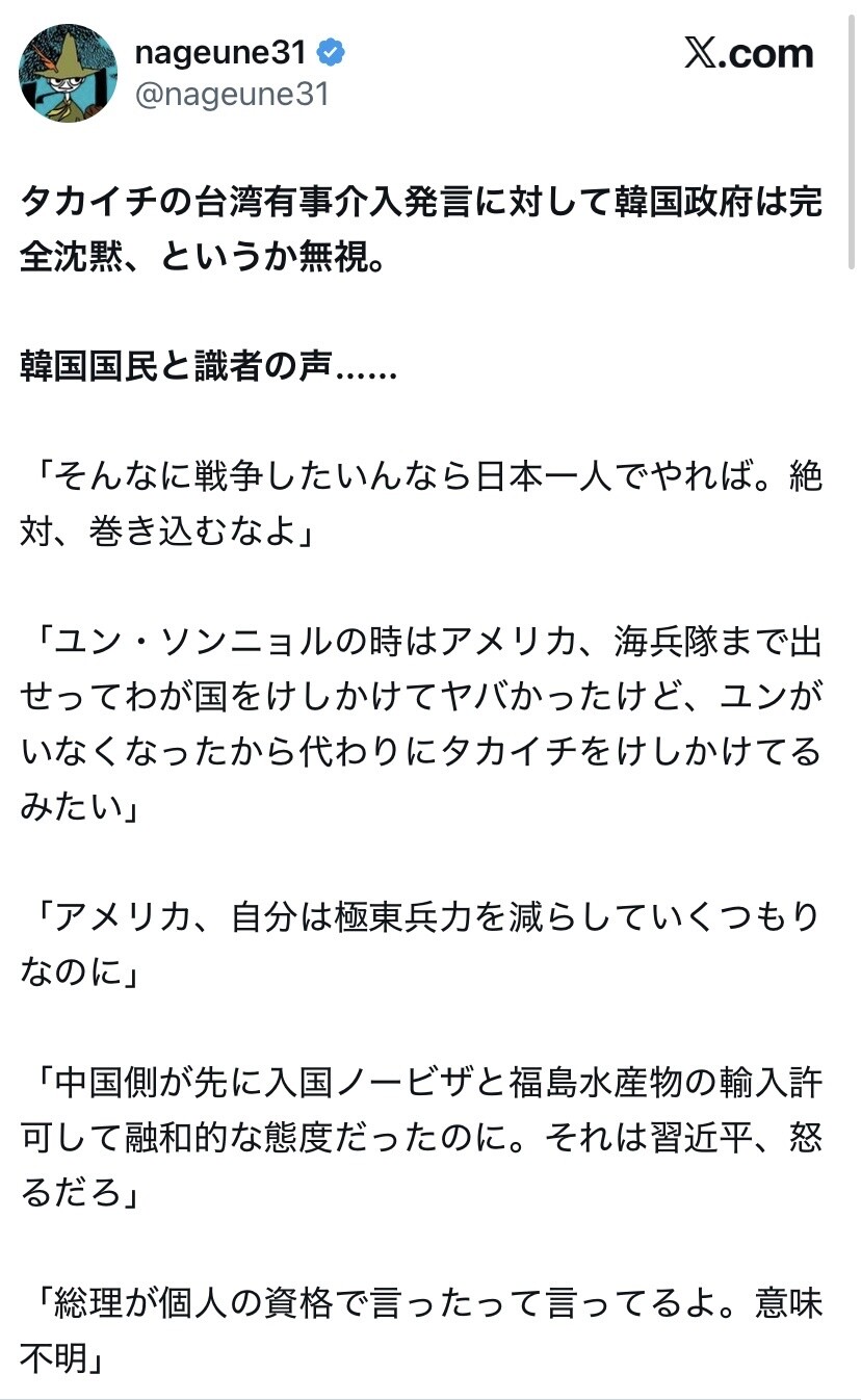 高市がしつこく言及してる意味が、韓国人にはわからないのか。