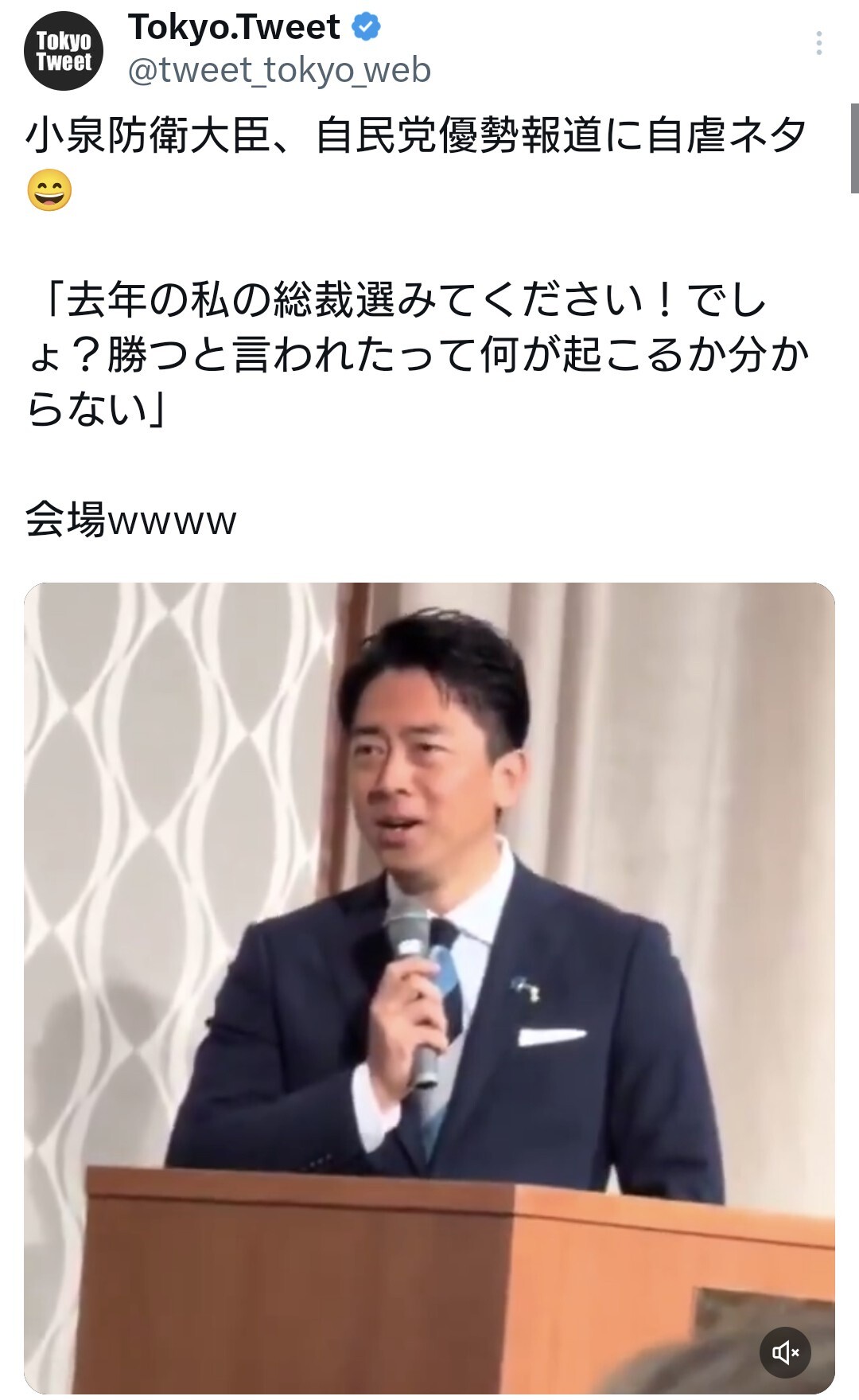 小泉防衛大臣、自民党優勢報道に自虐ネタ??