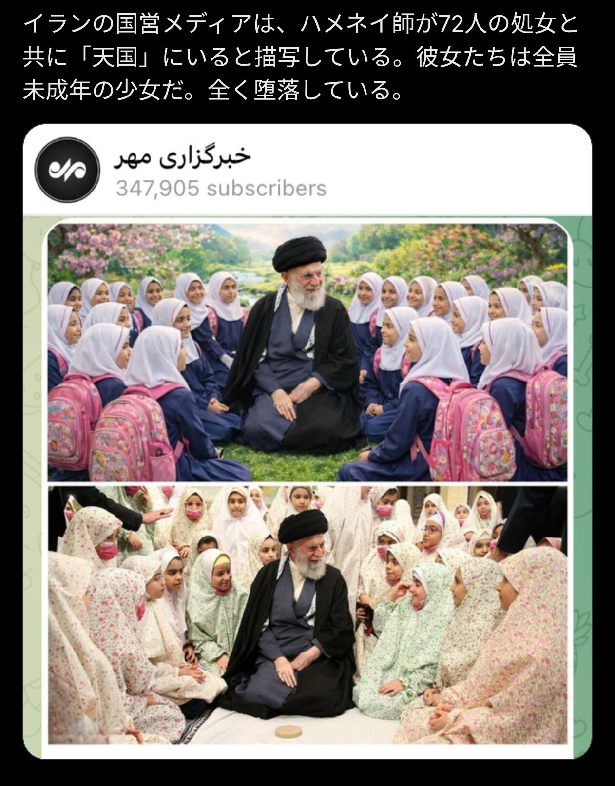 天国のご褒美が処女ってのは経典に乗ってるような正統な教えではないんだろうけど