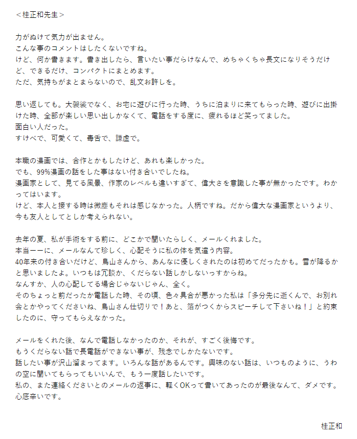 桂正和と鳥山明で新作のネームの打ち合わせしてきたって言ってたのに